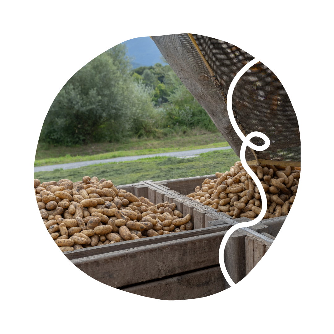 La pomme de terre est un tubercule comestible qui est cultivé chez nous. Elle est riche en glucides complexes, en vitamines et en minéraux, et peut être préparée de nombreuses façons différentes. Les pommes de terre peuvent être bouillies, grillées, rôties, frites, en purée, en gratin, ou utilisées dans des soupes ou des ragoûts.